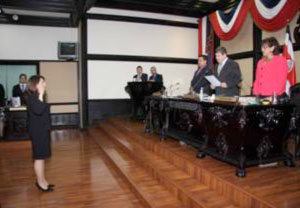 Doris Arias está casada, tiene tres hijas y es vecina de San Francisco de Heredia. La magistrada fue juramentada la tarde de ayer, en el Salón de Sesiones de la Asamblea Legislativa. MAGISTRADAS RECIBEN A DRA. ARIAS EN SU PRIMER DÍA DE TRABAJO La Dra. Doris Arias fue recibida en su primer día de trabajo por un grupo de Magistradas de la Corte Suprema de Justicia. Como una muestra de bienvenida, las Magistradas, Julia Varela y Eva Camacho de la Sala Segunda, Carmenmaría Escoto y Anabelle León de la Sala Primera, así como Cristina Rojas, de la Oficina de Cooperación y Relaciones Internacionales, visitaron y entregaron un presente a la Dra. Doris Arias, Magistrada electa de la Sala Tercera. La nueva Magistrada agradeció el gesto y a la vez mencionó estar muy halagada de ser la octava mujer en ocupar un cargo tan alto dentro de la Corte Suprema de Justicia. “He trabajado con los derechos de las mujeres por mucho tiempo. El hecho de que el Poder Judicial cuente con otra Magistrada, representa un logro muy grande para la ciudadanía, no solo para el Poder Judicial sino también para el resto del país, porque la democracia se fortalece cuando hay mujeres” dijo la Dra. Arias. La visita de bienvenida se realizó la tarde de este jueves. |