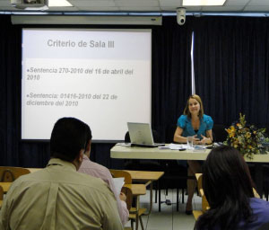 “Normativa y Jurisprudencia en Penalización de la Violencia contra las Mujeres” fue el nombre del curso que se realizó el pasado 11 de marzo, en el aula académica del edificio de la Defensa Pública, San José. El curso promovido por la Unidad de Capacitación de la Defensa Pública fue impartido por la Msc. Flor Salazar Fallas, Defensora Pública. “La capacitación tiene el fin de conocer y analizar la normativa tanto nacional como internacional relacionada con la materia de penalización de la violencia contra la mujer”, indicó Salazar. El programa del curso se dividió en cuatro secciones con diferentes temas a tratar, tales como: el ámbito de aplicación de la Ley de Penalización, la Ley contra la Violencia Doméstica y el incumplimiento de las medidas de protección de la ley, la conciliación y la defensa de los usuarios adultos mayores. Cabe destacar que durante el curso la Unidad de Penalización presentó y entregó en un disco compacto jurisprudencia relacionada con la Ley de Penalización contra la mujer y todas aquellas resoluciones de interés en materia penal y de familia. Además, se incluyen los delitos de lesiones, agresión con arma, infracción Ley adulto mayor, así como las jurisprudencias más importantes en Violencia Doméstica del Tribunal de Familia, entre otros. |