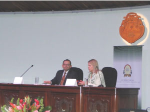 Presidenta del Consejo Directivo de la Escuela Judicial y Presidenta de la Sala Constitucional, Magistrada Ana Virginia Calzada Miranda y el Director de la Escuela Judicial, Dr. Marvin Carvajal Pérez. |