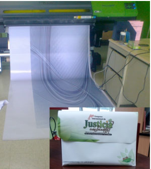 Sobrantes de papel periódico y cartón en desuso, así como material sintético de láminas plásticas, fueron parte del insumo que utilizó el Departamento de Artes Gráficas del Poder Judicial, para la elaboración de las carpetas, libretas para apuntes, certificados de participación y almohadillas para Mouse (Mouse pad), durante el Primer Congreso Internacional de Justicia Ambiental realizado el mes pasado en la Universidad EARTH en Guácimo de Limón. |