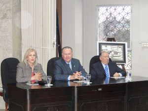 En la inauguración de la exposición participaron, en la mesa principal, el Presidente de La Corte Luis Paulino Mora Mora, el Coordinador de la Comisión de Construcciones Luis Guillermo Rivas Loáiciga y la Presidenta de la Sala Constitucional, Ana Virginia Calzada Miranda.