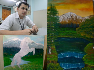 En el Juzgado Civil de Mayor Cuantía de Buenos Aires, en la zona sur del país labora Luis Diego Padilla Monge, técnico judicial, quien fuera de sus labores diarias es un gran ejemplo de cómo esta motivación se convierte en arte. Un poco tímido, tal vez sorprendido por la visita de Observatorio Judicial, este trabajador quien cuenta con tres años de trabajar en el Poder Judicial y vecino de Pérez Zeledón, accedió a conversar un poco sobre su pasatiempo, a la vez que nos contó una pincelada sobre sus trabajos. Padilla comenta que desde pequeño tuvo curiosidad por el dibujo, por lo que empezó a hacerlo como pasatiempo, indica que es algo que disfruta, siendo una pasión que lo envuelve y motiva cada día más. Este joven trabaja en las técnicas del óleo, acrílico, madrea, spray y tiza pastel. Un dato curioso es que según indicó el pintor, comenzó a trabajar la pintura con spray tras observar a un artista trabajando con este material, ya que le sorprendió la rapidez con que se desarrolla esta técnica, lo que captura las miradas de la audiencia. Para este servidor, su principal motivación es trabajar con la naturaleza, por lo que en muchas de sus obras se pueden apreciar hermosos paisajes, así como sorprendentes representaciones de diferentes animales como por ejemplo los caballos. Además de esto, Luis Diego elabora adornos y piñatas para fiestas, lo que complementa su trabajo artístico. Sus obras se pueden ver en la página de Facebook denominada "Imaginarte de Diego Padilla", perfil en el que usted puede apreciar el talento de este gran artista judicial. Así entonces, mediante este tipo de representaciones artísticas se resaltan los grandes talentos con los que cuenta este Poder de la República. |