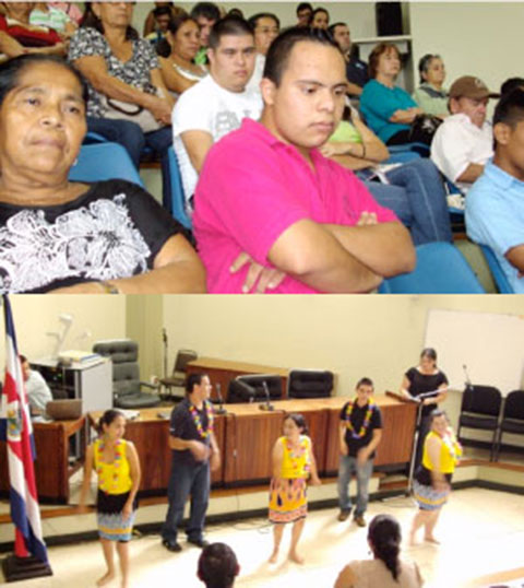 | En el marco de la conmemoración del Día Internacional de las Personas con Discapacidad, el Circuito Judicial de San Carlos y la Administración de Puntarenas en coordinación con la Unidad de Acceso a la Justicia, llevaron a cabo actividades en donde el talento y la creatividad de este sector de la población fue el principal protagonista. En el caso de San Carlos, con la presencia de representantes de las autoridades locales como la Defensoría de los Habitantes, la Alcaldía Municipal y el Ministerio de Educación Pública, además de personas de los cantones de San Carlos, Upala, Guatuso y Los Chiles, la actividad llenó los ojos de los presentes con los bailes, actos y obras expuestas. En total 105 personas pudieron disfrutas de las presentaciones culturales, así como de la exhibición de pinturas y las manualidades elaboradas por las personas con discapacidad que se lucieron con sus destrezas. La iniciativa fue coordinada por la Administración Regional en conjunto con la Contraloría de Servicios y el Consejo de Rehabilitación y Educación Especial de San Carlos. Por su parte, en Puntarenas, la actividad fue dirigida a diferentes personas de la comunidad, inclusive visitantes de Monteverde representando a la Asociación de Padres y Personas con Discapacidad (APAPMEM). Se realizaron exposiciones por parte de la Administración y la Subcontraloría de Servicios, dando a conocer los esfuerzos que ha hecho el Poder Judicial, para acondicionar los edificios propios y la coordinación que se realiza con los propietarios de los locales alquilados para también acondicionar los mismos. También se comentaron los servicios que se brindan y los derechos con que cuentan las personas con algún tipo de discapacidad. Por último se compartió un refrigerio con las personas participantes. Al final de la actividad se entregaron los certificados de participación del taller "Derechos Humanos de las Personas con Discapacidad y Acceso a la Justicia" realizado el pasado 7 de agosto en Puntarenas.