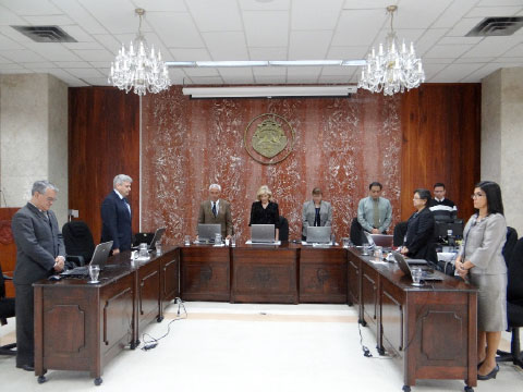 | · Integrantes honran su memoria trabajando por una justicia accesible, sencilla y humana. Con un minuto de silencio, recordando las enseñanzas del Dr. Luis Paulino Mora Mora y trabajando con la consigna de dar siempre lo mejor, así inició la sesión del Consejo Superior del martes 19 de febrero. Los y las integrantes del máximo Órgano Administrativo del Poder Judicial, rezaron un Padre Nuestro y un Ave María, recordando el ejemplo y grandes enseñanzas que les dejó don Luis Paulino, por trabajar siempre con entusiasmo y generosidad, pese a cualquier dificultad. En la sesión participaron la Presidenta en Ejercicio de la Corte, Zarella Villanueva Monge, los/a integrantes del Consejo Superior Lic. Alejandro López Mc Adam, Lic. Mario Mena Ayales, Licda. Milena Conejo Aguilar, la integrante suplente Licda. Carmen Aguilar Mora, el Director Ejecutivo, Lic. Alfredo Jones León y la Secretaría General de la Corte, Licda. Silvia Navarro Romanini. Las y los integrantes del Consejo Superior, reflexionaron sobre lo que en vida les dejó el Dr. Mora, “… hoy nos sostienen sus enseñanzas, su ejemplo, su amor por las demás personas, por la Patria y por la Justicia; saber que eso es lo que da la fuerza para servir cada día con alegría”. Así mismo, expresaron su confianza porque el espíritu de don Luis no los abandonará y que unidos como él les enseñó, es posible cambiar la forma de hacer las cosas y tener una justicia accesible, sencilla, humana y que sea acorde con la dignidad de las personas, sobre todo aquellas que más lo necesitan.