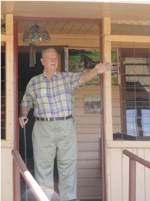 Sentado en el largo corredor de su vivienda, ubicada en Barrio El Carmen de Santiago de Puriscal, don Juan Mora recuerda las visitas de su sobrino, anécdotas e historias.