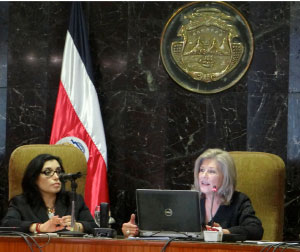 Por su parte, la Presidenta de la Sala Primera Anabelle León Feoli, hizo uso de la palabra y agradeció a la Magistrada hondureña, sus muestras de cariño y resaltó los fallos emblemáticos de don Luis, su visión, logros y compromisos por dar un servicio público de calidad.
