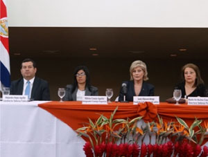 Propiciar un espacio de análisis sobre los logros alcanzados durante 45 años de trabajo, así como los retos frente a las demandas sociales, es parte de los temas que se tratarán durante las Jornadas Académicas denominadas “Defensa Pública como garantía de acceso a la justicia”. El acto inaugural se realizó el pasado 27 de agosto y contó con la participación de la Presidenta de la Corte Suprema de Justicia, Zarela Villanueva Monge, la Directora y el Subdirector de la Defensa Pública, Marta Iris Muñoz Cascante y Alejandro Rojas Aguilar; así como la integrante del Consejo Superior, Milena Conejo Aguilar. “Nuestra institución ha crecido y se ha fortalecido en la protección de los derechos fundamentales de las personas en su mayoría en condiciones de vulnerabilidad. Hemos asumido grandes retos, con responsabilidad y compromiso, con la convicción de ejercer nuestras funciones cada vez mejor. Hemos crecido en la atención de los casos penales, de ejecución de la pena, de pensiones alimentarias; ampliamos nuestros servicios a través de proyectos pilotos como la PISAV y en laboral. Esfuerzos que han hecho que por muchos años nuestra institución haya sido considerada la mejor Defensa Pública de América Latina, distinción que hace que debamos mejorar cada día más”, indicó Marta Iris Muñoz. Además destacó importantes proyectos que se vienen ejecutando y están por desarrollarse en el marco de la cooperación internacional con el Programa EUROsociAL, mediante la coordinación con la Oficina de Cooperación y Relaciones Internacionales (OCRI), entre los que destacan el fortalecimiento y creación de las Unidades de Ejecución de la Pena en Ecuador, Guatemala, Honduras y Paraguay, para garantizar los derechos de las personas privadas de libertad y la conformación de una red de apoyo para las mujeres en el sistema penitenciario y sus familiares dependientes en condiciones de vulnerabilidad. Así como el impulso al programa de videoconferencias, como un mecanismo ágil que permite a las personas usuarias privadas de libertad comunicarse con sus defensores o defensoras, proyecto que se ha replicado en Argentina y Chile. La Presidenta de la Corte, Zarela Villanueva Monge, destacó que el gran desarrollo que ha tenido que ha tenido el Poder Judicial, a través del cual se han generado acciones que facilitan el acceso a las personas a la administración de justicia, ha tocado también a la Defensa Pública al incorporarse nuevas funciones.