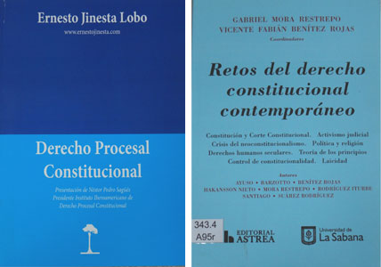 Con el fin de mantener un servicio actualizado de consulta al personal judicial y al público en general, la Biblioteca Judicial Fernando Coto Albán, pone a disposición una serie de nuevas adquisiciones de literatura, con temáticas muy variadas. Los nuevos textos ingresaron el pasado mes de diciembre y corresponden a materias tales como administrativa, civil, penal, procesal, comercial, constitucional, electoral, informático, internacional privado y de derechos humanos. Dentro de las recientes adquisiciones resaltan literatura en derecho constitucional como lo es el libro “Derechos procesal constitucional”, del magistrado Ernesto Jinesta Lobo y el libro “Retos del derecho constitucional contemporáneo”, de Gabriel Mora Restrepo y Vicente Benítez Rojas. Estas y otras nuevas adquisiciones se encuentran a disposición en la Biblioteca Judicial, en el primer piso del edificio de la Corte Suprema de Justicia. |