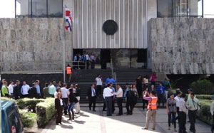 El personal judicial que labora en el edificio de la Corte Suprema de Justicia, participó la mañana del pasado 12 de junio de los ejercicios de evacuación que realiza el Área de Salud Ocupacional del Departamento de Gestión Humana. El simulacro se realizó a las 9:00 a.m. y logró desalojar unas 275 personas a través de las dos salidas oficiales que tiene el edificio. El tiempo de evacuación del personal por el frente del edificio fue de 4 minutos con 26 segundos por la salida oeste, mientras que la salida por el costado este del inmueble se hizo en un tiempo de 4 minutos y 59 segundos. Los servidores y servidoras judiciales del edificio de la Corte se dirigieron a las rutas de evacuación debidamente establecidas y se reunieron en grupos en las diferentes zonas externas de resguardo en los alrededores del edificio. Estos simulacros se realizan con el propósito de crear consciencia en el personal judicial sobre la importancia de estar preparados ante un caso de emergencia por un sismo y están debidamente autorizados por Corte Plena y el Consejo Superior. Su participación es obligatoria y se deben tomar las previsiones del caso, con el fin de no afectar la atención del público. |