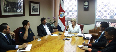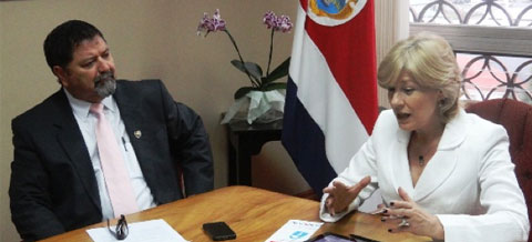 El Ministro de Seguridad Pública, Gustavo Mata Vega presentó el pasado 11 de agosto, a la Presidenta de la Corte Suprema de Justicia, Zarela Villanueva Monge una propuesta “para la lucha contra el crimen organizado, narcotráfico y delitos violentos”. Según indicó el ministro, la propuesta está dirigida en dos objetivos: la prevención y la represión. “Desde el inicio de mi gestión, empecé a articular una interacción entre diferentes instituciones. Tenemos que contar con una política fuerte preventiva, que cuente paralelamente con una acción represiva” mencionó Gustavo Mata, quien adicionalmente dijo que ya ha presentado esta propuesta a la asociación de jueces y al Ministerio Público. El objetivo principal es la creación de una Unidad de Articulación entre el Poder Judicial y cuerpos de policía contra la delincuencia organizada que busca la integración de la información y reformular la conformación del sector seguridad. “Esta propuesta de trabajo es para articular una serie de instituciones y trabajar con objetivos comunes” agregó Mata Vega. La Presidenta de la Corte, Zarela Villanueva aseguró que “el Poder Judicial tiene una preocupación y una ocupación en cuanto a estos temas, por lo que se han tomado una serie de acciones internas, que demuestra que hemos tomado conciencia en el tema”. Además mencionó que las instituciones tienen que estar unidas ante el crimen organizado En la reunión estuvieron presentes Róger Mata Brenes, Director del Despacho de la Presidencia; Rudy Morales Viales y Cristian Gonzaga Martínez, asesores del Ministro de Seguridad Pública.