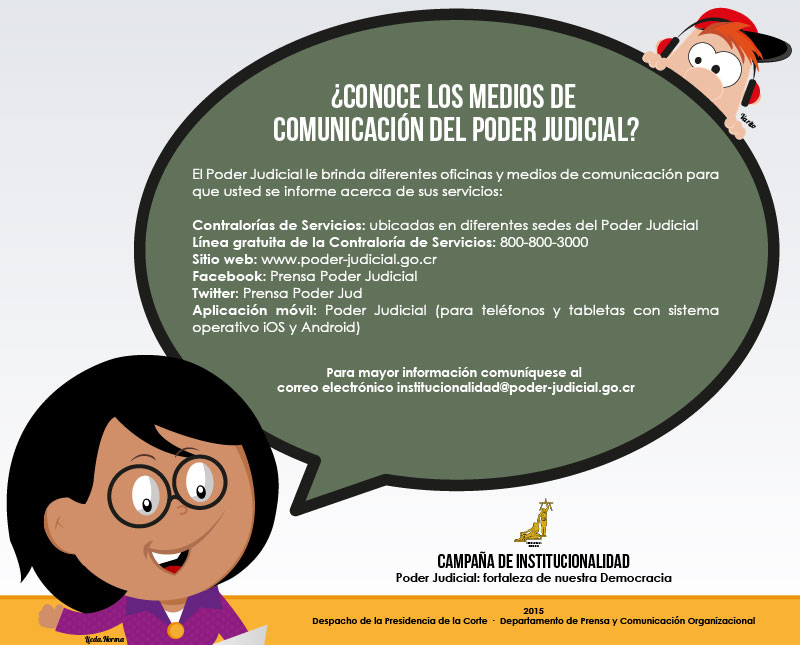 “Lo que nos interesa en el Poder Judicial de la participación ciudadana, es lo que conlleva a ese diálogo entre autoridades judiciales con los grupos organizados de las distintas comunidades, para lograr una prestación efectiva y más eficaz del servicio público de justicia. El plan tiene también una vocación de poder ser compartido con otras agencias del Estado costarricense, que quieran implementar programas o definir políticas de participación ciudadana y toda esta metodología puede ser compartida. La política se presentó recientemente a miembros de CONAMAJ y entes como la Contraloría General de la República está muy interesada en el desarrollo de un programa de participación ciudadana en la fiscalización presupuestaria de las oficinas del Estado. Al Tribunal Supremo de Elecciones le interesa mucho el tema de la participación electoral que tiene un alto contenido de participación ciudadana. En el caso del Ministerio de Justicia manifestaron el interés por desarrollar diálogos con la sociedad a través de estas metodologías, frente a temas como la apertura de centros de tratamiento laboral a la población que guarda prisión”. |