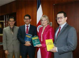 Los jueces del Tribunal de Flagrancia de Goicoechea, Daniel Sánchez Delgado y Carlos Morales Chichilla, se reunieron con la Presidencia de la Corte, Zarela Villanueva Monge para hacerle entrega de dos publicaciones especializadas en el tema de flagrancia. La máxima jerarca judicial recibió de parte de los jueces un ejemplar de la obra “Procedimiento de Flagrancia: Temas Actuales. Segunda Parte”, cuya presentación estuvo a cargo de la magistrada Villanueva Monge, en la cual externó que “Realmente son un importante aporte a una sana y necesaria discusión sobre un tema que es de interés institucional y nacional. Mi reconocimiento a quienes brindaron los valiosos aportes y a quienes promueven la publicación". Además, durante la reunión también se le hizo entrega de l Primer Tomo del Libro "Procedimiento de Flagrancias", así como de la obra "Procedimiento Expedito para los Delitos en Flagrancia, Comentado, Concordado y con Jurisprudencia". |