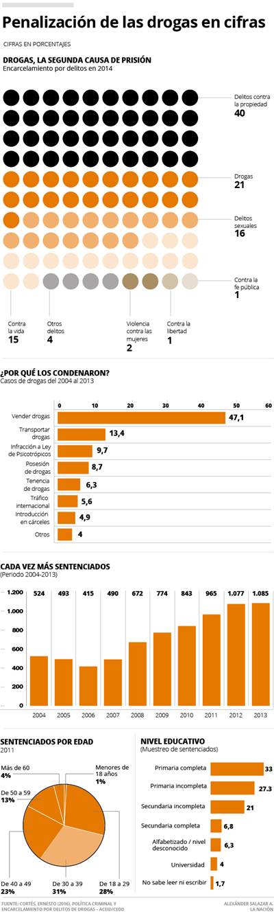 narco constituyen la segunda causa de encarcelamiento en el país, con casi un