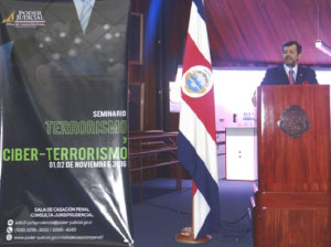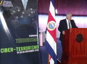 El Poder Judicial costarricense se enfocó en el análisis y capacitación sobre el tema del Terrorismo y Ciber-Terrorismo, a partir de las experiencias de países que han sufrido este tipo de embates. Argentina y Colombia, forman parte de los países que compartirán sus ponencias durante el seminario que se desarrolló los días 1 y 2 de noviembre. “La actividad se desenvuelve en un marco muy importante, ya que si bien es cierto Costa Rica no ha sido objeto de este tipo de ataques, también formamos parte de un mundo globalizado y no estamos exentos, de ahí la importancia de contar con legislación que nos permita regular conductas con respecto a la ciber criminalidad, pero desde el ámbito del ciber terrorismo”, señaló el Presidente de la Sala de Casación Penal, Magistrado Carlos Chinchilla Sandí. “El seminario tiene la finalidad de capacitarnos a partir de otras experiencias de expositores de alta calidad tanto a nivel nacional como internacional, para entender un fenómeno que actualmente está sucediendo en el mundo”, agregó el magistrado Chinchilla. El experto en seguridad nacional y terrorismo y ex ministro de Gobernación y de Seguridad, Álvaro Ramos Rechnitz, fue el primero de los expositores que se encargó de desarrollar de forma amplia el tema de los “Orígenes del terrorismo y su incidencia en el mundo moderno”. Destacó la relevancia de este seminario en el Poder Judicial, al calificar las ponencias y participaciones de un primer nivel. “La mayor importancia de que este seminario se esté llevando a cabo, es precisamente porque en Costa Rica no tenemos terrorismo; sin embargo se dejará sembrada futuras discusiones sobre el tema, que le permitirá al Poder Judicial y otros funcionarios y funcionarias de otras instituciones, prepararsey aprender de experiencias a través de discusiones de primer nivel,ante algo que podría en una eventualidad tocar nuestro país”, afirmó Ramos. Otra de las ponencias presentadas fue el tema “Financiamiento de Terrorismo y extinción de dominio frente al terrorismo”, a cargo del Dr. Jairo Ignacio Acosta Aristizábal, Coordinador Nacional de Procuradores en el Área de Crimen Organizado, Procurador Judicial Delegado ante el Tribunal Superior y el Tribunal de Justicia y Paz de Bogotá.