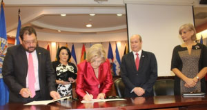 Un convenio que permitirá apoyar la formación y capacitación del Servicio Nacional de Facilitadores y Facilitadoras Judiciales, fue suscrito entre el Poder Judicial y la Universidad De La Salle el pasado 18 de noviembre, en la sede de la Corte Interamericana de Derechos Humanos. El convenio fue firmado por la Presidenta de la Corte Suprema de Justicia, Magistrada Zarela Villanueva Monge; el Presidente de la Comisión Nacional para el Mejoramiento de la Administración de Justicia (Conamaj), Magistrado Román Solís Zelaya; la Vicerrectora de la Universidad De La Salle, Rosa Espinoza y contó como testigo de honor, al Coordinador del Programa Interamericano de Facilitadores y Facitadoras Judicial de la OEA, Pedro Vuskovic, en el marco de la celebración del “Encuentro sobre Resultados y efectos alcanzados por el Programa Interamericano de Facilitadores y Facilitadoras Judiciales de la Organización de los Estados Americanos (PIFJ/OEA), en Centroamérica 2012-2016 y Tendencias al 2020”. “Quiero expresar mi agradecimiento por haber elegido a mi país para realizar el acto de rendición de cuentas del Programa de Facilitadores Judiciales de la Organización de los Estados Americanos, que se ha desarrollado en cada país de Centroamérica, con gran impacto en los Sistemas de Justicia, en el fortalecimiento de la democracia y de la paz”, expresó Villanueva quien resaltó la importancia que este programa ha tenido en nuestro país, al indicar que durante el año 2015 y el primer semestre del 2016 se han ofrecido 6000 orientaciones y se han brindado más de 380 acompañamientos, con gestiones de charlas y orientaciones que beneficiaron a más de 18.000 personas. “En Costa Rica hemos comprendido el valioso papel que juegan las personas facilitadoras en el sistema de administración de justicia, cuya participación se ha implementado en nueve circuitos judiciales; y este día con la firma de esta nueva herramienta de apoyo, servirá al fortalecimiento y la mejora en la calidad de este servicio”, subrayó la máxima jerarca del Poder Judicial. Villanueva Monge reconoció al Gobierno del Reino de los Países Bajos y la Organización de los Estados Americanos “… por haber hecho realidad el programa en nuestra región y haber impactado positivamente la vida de tantas personas en toda la región centroamericana”. La inauguración de la actividad estuvo a cargo del Presidente de la Corte Interamericana de Derechos Humanos, Sr. Roberto Caldas, la magistrada Villanueva Monge, acompañados por el Excelentísimo Embajador del Reino de los Países Bajos, Sr. Peter Derrekhofy y el Coordinador del Programa Interamericano de Facilitadores Judiciales de la OEA, Sr. Pedro Vuskovic, quien fue la persona encargada de presentar el informe del Programa.