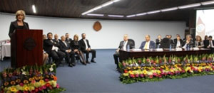 La y los representantes de los Supremos Poderes estuvieron presentes en la sesión solemne. |