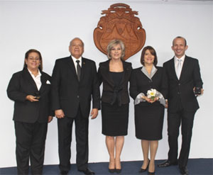 Magistrados y magistradas que integran la Corte Suprema de Justicia, premiaron, la mística, excelencia y trayectoria de tres personas que laboran en la institución. Los reconocimientos se entregaron en el marco de la inauguración del Año Judicial 2017, con la participación de los presidentes de los Supremos Poderes de la República, Zarela Villanueva Monge, Presidenta de la Corte Suprema de Justicia; Luis Guillermo Solís Rivera, Presidente de la República; José Alberto Alfaro Jiménez, Presidente de la Asamblea Legislativa y Luis Antonio Sobrado González, Presidente del Tribunal Supremo de Elecciones. El primer galardón se le hizo a la jueza del Tribunal de Apelaciones de Sentencia del Segundo Circuito Judicial de San José y Magistrada Suplente de la Sala Tercera, Sandra Zúñiga Morales, quien se hizo acreedora del reconocimiento “Fernando Coto Albán”, que se entrega al administrador o administradora o ex-administrador de justicia que se haya destacado por su mística, honradez, transparencia y dedicación al trabajo y que sus cualidades y logros profesionales hayan contribuido a enaltecer la labor del Juez o Jueza en la sociedad costarricense. El Premio “Ulises Odio Santos”, se entregó al Juez de la Sección Primera del Tribunal Segundo Civil de San José y Magistrado Suplente de la Sala Segunda, Jorge Enrique Olaso Álvarez, autor del libro “La prueba en materia laboral”, una obra de gran importancia para el ámbito jurídico nacional y particularmente para el Poder Judicial, al ser considerada como un elemento de apoyo en la enseñanza del Derecho Procesal y como tal, ha sido utilizada por la Escuela Judicial. Finalmente el premio “Miguel Blanco Quirós”, fue entregado a la servidora, Maribel Burgos Mata, Secretaria de la Administración del Segundo Circuito Judicial de San José, premio que reconoce la mística, excelencia y otros más valores de un funcionario o funcionaria judicial, en el desempeño de su trabajo, cualidades que fueron reconocidas por la Corte Plena. Los premios fueron entregados por el Magistrado Orlando Aguirre Gómez, Presidente de la Sala Segunda y Presidente del Tribunal de Reconocimientos del Poder Judicial, quien resaltó las cualidades, valores y virtudes de cada una de estas personas en sus respectivos cargos. Aguirre Gómez reconoció la responsabilidad que implica en los tiempos actuales la función judicial, la vocación de servicio y el compromiso adquirido con la sociedad costarricense. “… el país espera que actuemos conforme a la confianza que en nosotros se ha depositado y resguardemos los valores y principios fundamentales que priman en la convivencia humana, ya que los ciudadanos y ciudadanas acuden al Poder Judicial con la confianza de encontrar justicia, por ello debemos ser probos, no solo en lo profesional sino también en lo personal y las personas que hoy son premiadas cumplen con estas cualidades y son un ejemplo a seguir para todos nosotros”, indicó el magistrado. Agregó que “no me queda más que agradecerles por enaltecer la función del Poder Judicial, ustedes muestran los valores intrínsecos que deben imperar en todas las personas servidoras judiciales”. Para la elección de los premios, los magistrados y magistradas consideraron los atestados de las personas propuestas y se analizaron las conductas en el ejercicio de sus funciones dentro del Poder Judicial. Además se valoraron la vivencia de valores como la mística, honradez, transparencia y dedicación al trabajo. Estos reconocimientos tienen como propósito, incentivar las labores de todos los profesionales en las diferentes materias, a todas las y los servidores (as) y ex-servidores (as) judiciales, a los grupos de trabajadores y trabajadoras de una determinada oficina o Circuito Judicial, de acuerdo con los términos establecidos por el Reglamento de Reconocimientos Otorgados por el Poder Judicial. |