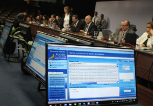 La sesión de Corte Plena del pasado 25 de febrero se caracterizó por el uso del nuevo sistema electrónico de votación. La herramienta promueve agilizar la labor de las sesiones del Órgano Judicial, para mejorar los procesos de votación, la elaboración de las actas y resguardar el material de trabajo. El sistema lo desarrolló la Dirección de Tecnología de la Información del Poder Judicial. “Permite manejar de forma integral la agenda de votación y ofrece diversas opciones, como la posibilidad de adjuntar documentos al tema que está en discusión. Incluye la grabación en mp3, la cual lleva la Secretaría de la Corte en tiempo real y permite trabajar de forma más célere la transcripción de los acuerdos”, explicó Henry Méndez Chavarría, de la Dirección de TI. Según explicó el profesional en Informática, todo se graba de forma digital y se realiza un respaldo de cada sesión en los servidores del Poder Judicial. También permite un mejor monitoreo de las votaciones, para mayor control de las emisiones de los votos. Además permitirá hacer búsquedas históricas de temas específicos que analice Corte Plena. |