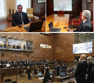 Ante la situación sanitaria que vive el país en las últimas semanas, el Presidente de la Corte Suprema de Justicia, Fernando Cruz Castro, siguió desde su despacho, bajo la modalidad virtual, la sesión solemne de la Asamblea Legislativa. El pasado 4 de mayo, le correspondió al Presidente de la República, Carlos Alvarado Quesada, rendir su informe de labores ante la Asamblea Legislativa, en cumplimiento a lo que establece el artículo 11 del reglamento del primer Poder de la República. En el acto también participan los representantes de los Supremos Poderes, que en atención a la emergencia sanitaria por COVID-19, demanda asumir medidas preventivas para reducir el riesgo de contagio, como lo es el seguimiento de trasmisión desde la vía virtual. El acto se da luego del cambio del Directorio Legislativo que tuvo lugar en la sesión solemne del sábado 1 de mayo. |