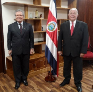 El Presidente de la Corte Suprema de Justicia, Fernando Cruz Castro se reunió con Carlos Alejandro Barros Oreiro, Embajador extraordinario y plenipotenciario de Uruguay. La visita protocolaria tuvo como objetivo estrechar lazos de cooperación entre las autoridades judiciales de Costa Rica y la representación diplomática del gobierno de Uruguay. Durante la reunión Barros Oreiro indicó que está iniciando un nuevo período como embajador de su país en Costa Rica. La reunión tuvo lugar en el Edificio de la Corte Suprema de Justicia, el pasado 8 de marzo de 2022. |