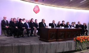 El acto se celebró el pasado 24 de marzo 2023, con la participación de representantes de los Supremos Poderes, Orlando Aguirre Gómez, Presidente de la Corte; Rodrigo Arias Sánchez, Presidente de la Asamblea Legislativa y Eugenia Zamora Chavarría, Presidenta del TSE; así como magistrados y magistradas que integran Corte Plena, autoridades judiciales administrativas, jurisdiccional y auxiliares de justicia, diputados, diputadas, cuerpo diplomático y jerarcas de entidades públicas.