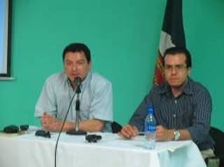 Juez Max Antonio Escalante Quirós, del Juzgado Penal del I Circuito Judicial de San José y el juez Manuel Giovanni Mena Artavia, del Tribunal Penal de Puntarenas, quienes tuvieron a su cargo la dirección del conversatorio. |