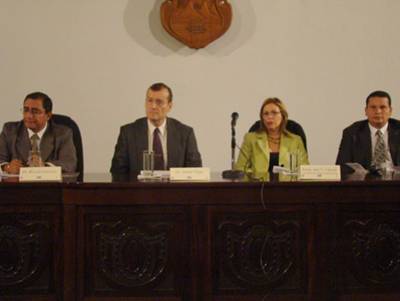 En la mesa redonda participaron Ricardo Guerrero, Rector de la Universidad Libre de Derecho y los magistrados constitucionalistas Adrián Vargas, Ana Virginia Calzada y Ernesto Jinesta. |