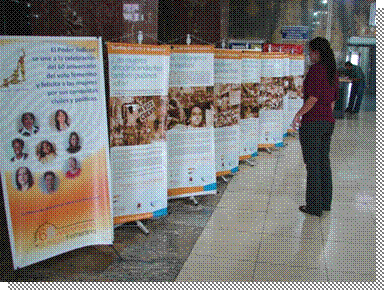 En el año de celebraciones del 60 Aniversario del voto femenino, durante el mes de octubre, en el Vestíbulo de la Corte Suprema de Justicia se llevó a cabo una exposición itinerante de banners que contienen los aspectos trascendentales del proceso y las luchas históricas que ha significado la conquista del voto y la participación política de las mujeres.